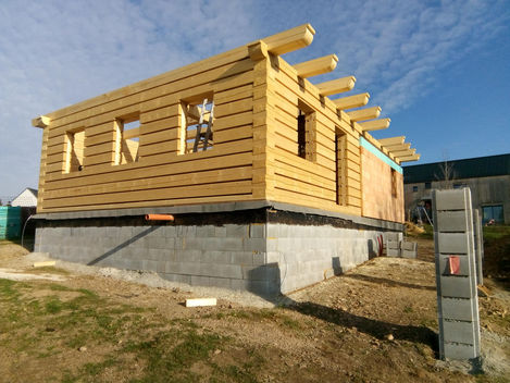 Krásný výhled nabízí poloroubenka v Březové. Jedná se o poměrně rozměrnou stavbu s krytou terasou. Roubenou část jsme připravili na naší výrobně. Na této stavbě jsme realizovali všechny tesařské práce, tj. roubení, stropy a krov, krytinu si investor pokládal sám.