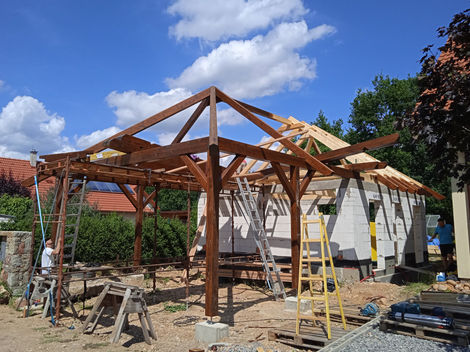 V Srbsku jsme realizovali garážové stání na 2 auta spojené se zděnou stavbou, která bude sloužit jako dílna.